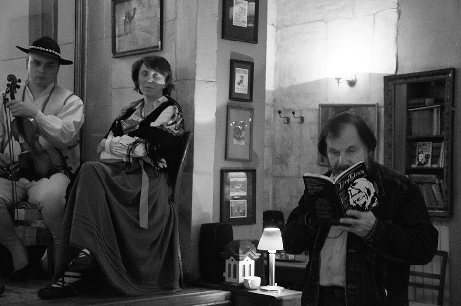 6. Salon LiryDramu 16 marca 2015 Tradycyjnie w poniedziałek, jak co kwartał, odbyło się spotkanie Redakcji Kwartalnika, Współpracowników i Artystów goszczących na łamach 6. numeru Pisma – z czytelnikami. Specjalnie na tę okazję przybyli twórcy z Podhala, którzy swoim śpiewem i muzyką, niczym Mojżesz odpowiednim słowem i gestem, wyprowadzili zgromadzone towarzystwo z domu niewoli, wprost ku niczym nie skrępowanym przestrzeniom stoków górskich. Za Andrzejem i Dawidem Pietrasem, Teresą Kowalowską oraz Józefem Skupniem podążyli nie tylko obecni ciałem. Dołączyły bowiem duchy Dziadońki, Hanki Nowobielskiej i Deotymy. A kto wie, kto i co jeszcze… tekst: Marlena Zynger