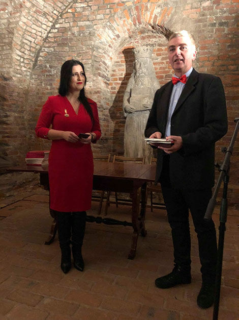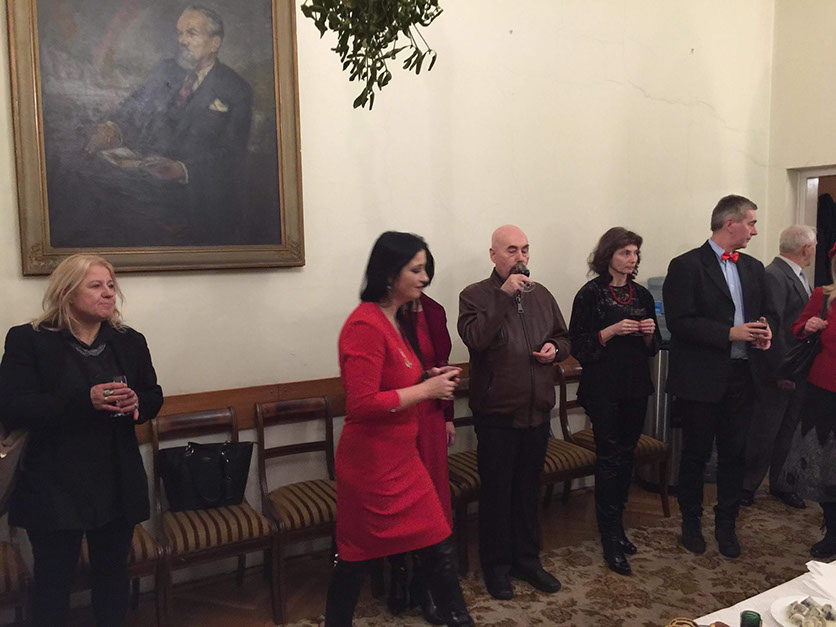 LiryDram • kwartalnik literacko-kulturalny • 16. Salon LiryDramu 29 grudnia 2017 Zamek Królewski 29 grudnia 2017 r. w Loży Masońskiej Zamku Królewskiego w Warszawie odbyło się kolejne spotkanie czytelników „LiryDramu” z redakcją pisma oraz z artystami, których twórczość została zaprezentowana w 17. numerze kwartalnika. Między innymi gościliśmy Ewę Zelenay – bohaterkę okładki, poetkę, dziennikarkę i pisarkę, członka Zarządu Oddziału Warszawskiego Związku Literatów Polskich, Grzegorza Trochimczuka, Annę Andrych, Magdalenę Węgrzynowicz-Plichtę, Aleksandra Nawrockiego, Barbarę Jurkowską, Jana Chruślińskiego, Janusza Termera, Joannę Babiarz, Janusza Szota, Annę Siwek, Annę Skowrońską, Konrada Rytla, Malwinę de Bradé, Arnolda Ananicza, Dominikę Świątek, Marię i Waldemara Marczewskich, Kamilę i Cezarego Bartkowiak, Bartłomieja Muchę, Macieja Mazura, Pawła Gutta i przedstawicieli ZAiKS-u. Było to spotkanie szczególne, ponieważ tradycyjnym rozmowom towarzyszyła uroczystość wręczenia odznaczenia „Zasłużony dla Kultury Polskiej” przyznanego przez ministra kultury i dziedzictwa narodowego Piotra Glińskiego Ewie Bartkowiak (pseud. lit. Marlena Zynger) – poetce i redaktor naczelnej „LiryDramu”. W imieniu ministra medal przypiął poetce wiceprezes Zarządu Głównego Związku Literatów Polskich i prezes Stowarzyszenia Promocji Polskiej Twórczości Zbigniew Milewski. Odznakę honorową "Zasłużony dla Kultury Polskiej" przyznaje się osobom wyróżniającym się w tworzeniu, upowszechnianiu i ochronie kultury. Uroczystości towarzyszył krótki koncert skrzypcowy Natalii Serwety. W jej wykonaniu zabrzmiały utwory Jana Sebastiana Bacha (m.in. Partita No. 2) oraz Czardasz Vittorio Montiego. Po oficjalnej uroczystości zebrani udali się na poczęstunek do siedziby ZLP – Domu Literatury przy Krakowskim Przedmieściu 87/89.[red.] POWRÓT >