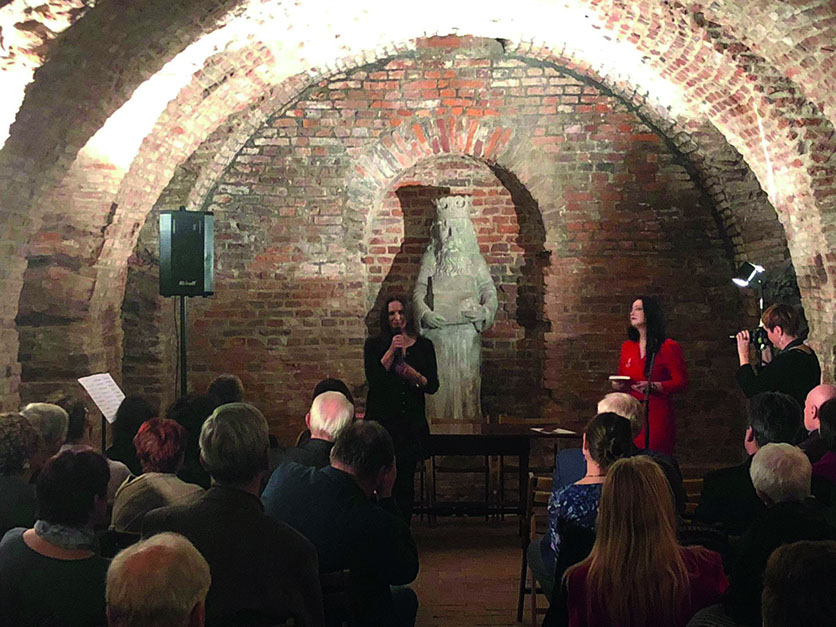 LiryDram • kwartalnik literacko-kulturalny • 16. Salon LiryDramu 29 grudnia 2017 Zamek Królewski 29 grudnia 2017 r. w Loży Masońskiej Zamku Królewskiego w Warszawie odbyło się kolejne spotkanie czytelników „LiryDramu” z redakcją pisma oraz z artystami, których twórczość została zaprezentowana w 17. numerze kwartalnika. Między innymi gościliśmy Ewę Zelenay – bohaterkę okładki, poetkę, dziennikarkę i pisarkę, członka Zarządu Oddziału Warszawskiego Związku Literatów Polskich, Grzegorza Trochimczuka, Annę Andrych, Magdalenę Węgrzynowicz-Plichtę, Aleksandra Nawrockiego, Barbarę Jurkowską, Jana Chruślińskiego, Janusza Termera, Joannę Babiarz, Janusza Szota, Annę Siwek, Annę Skowrońską, Konrada Rytla, Malwinę de Bradé, Arnolda Ananicza, Dominikę Świątek, Marię i Waldemara Marczewskich, Kamilę i Cezarego Bartkowiak, Bartłomieja Muchę, Macieja Mazura, Pawła Gutta i przedstawicieli ZAiKS-u. Było to spotkanie szczególne, ponieważ tradycyjnym rozmowom towarzyszyła uroczystość wręczenia odznaczenia „Zasłużony dla Kultury Polskiej” przyznanego przez ministra kultury i dziedzictwa narodowego Piotra Glińskiego Ewie Bartkowiak (pseud. lit. Marlena Zynger) – poetce i redaktor naczelnej „LiryDramu”. W imieniu ministra medal przypiął poetce wiceprezes Zarządu Głównego Związku Literatów Polskich i prezes Stowarzyszenia Promocji Polskiej Twórczości Zbigniew Milewski. Odznakę honorową "Zasłużony dla Kultury Polskiej" przyznaje się osobom wyróżniającym się w tworzeniu, upowszechnianiu i ochronie kultury. Uroczystości towarzyszył krótki koncert skrzypcowy Natalii Serwety. W jej wykonaniu zabrzmiały utwory Jana Sebastiana Bacha (m.in. Partita No. 2) oraz Czardasz Vittorio Montiego. Po oficjalnej uroczystości zebrani udali się na poczęstunek do siedziby ZLP – Domu Literatury przy Krakowskim Przedmieściu 87/89.[red.] POWRÓT >