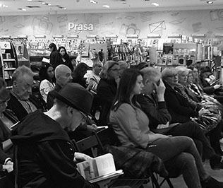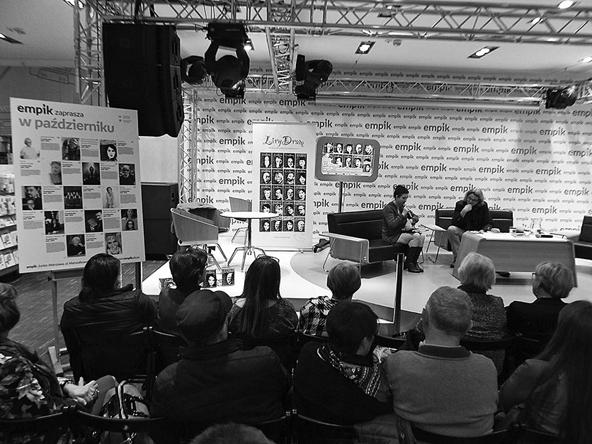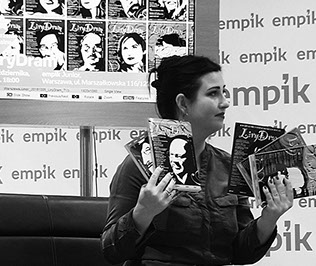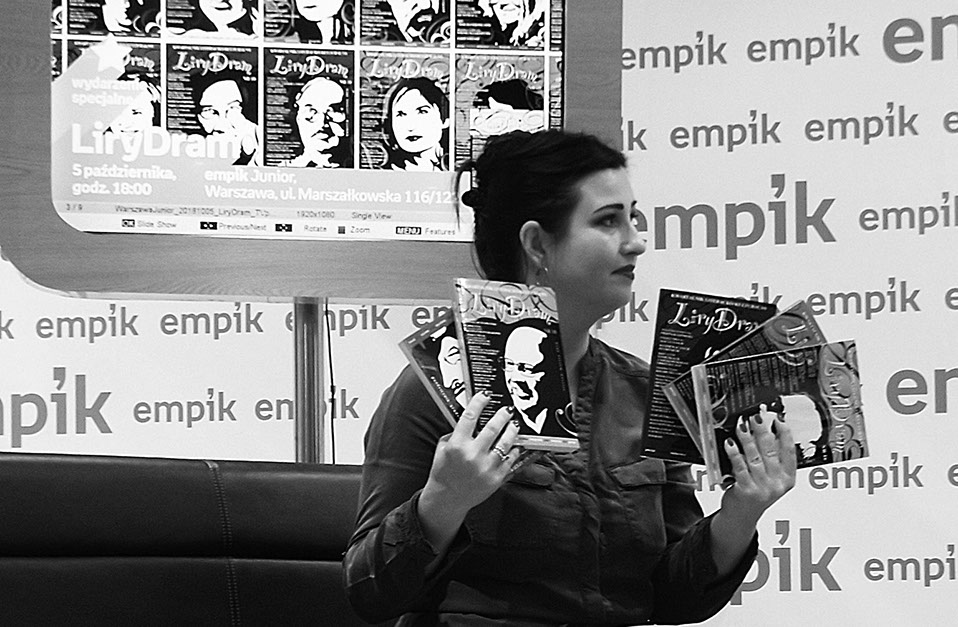 LiryDram • kwartalnik literacko-kulturalny • 19. Salon LiryDramu Warszawa Spotkanie redakcji „LiryDramu” z twórcami i czytelnikami. Empik Junior Marszałkowska Warszawa 5 października 2018 5 października 2018 r. (piątek) o godz. 18.00 w Empiku na Marszałkowskiej w Warszawie odbyło się spotkanie redakcji Kwartalnika Literacko-Kulturalnego „LiryDram” z czytelnikami oraz zaproszonymi poetami i pisarzami. Tematem spotkania były wyróżnione nagrodami teksty poetyckie opublikowane w 19. i 20. numerze kwartalnika, m.in. Małgorzaty Lebdy, Julii Fiedorczuk, Wojciecha Bonowicza, Adama Zagajewskiego, Zbigniewa Milewskiego, Aleksandra Nawrockiego, Ewy Zelenay, Marleny Zynger i Marcina Orlińskiego, ponadto polecane książki i wystawy krajowe i zagraniczne. O przygotowywanej wspólnie z „LiryDramem” ogólnopolskiej wystawie Twarze współczesnych poetów polskich opowiedział twórca portretów – Robert Manowski, właściciel i rektor Wyższej Szkoły Artystycznej w Warszawie. Spotkanie poprowadziła redaktor naczelna Marlena Zynger, a jej gościem była krakowska poetka Małgorzata Lebda (nagroda Barańczaka 2017). [red.] POWRÓT >